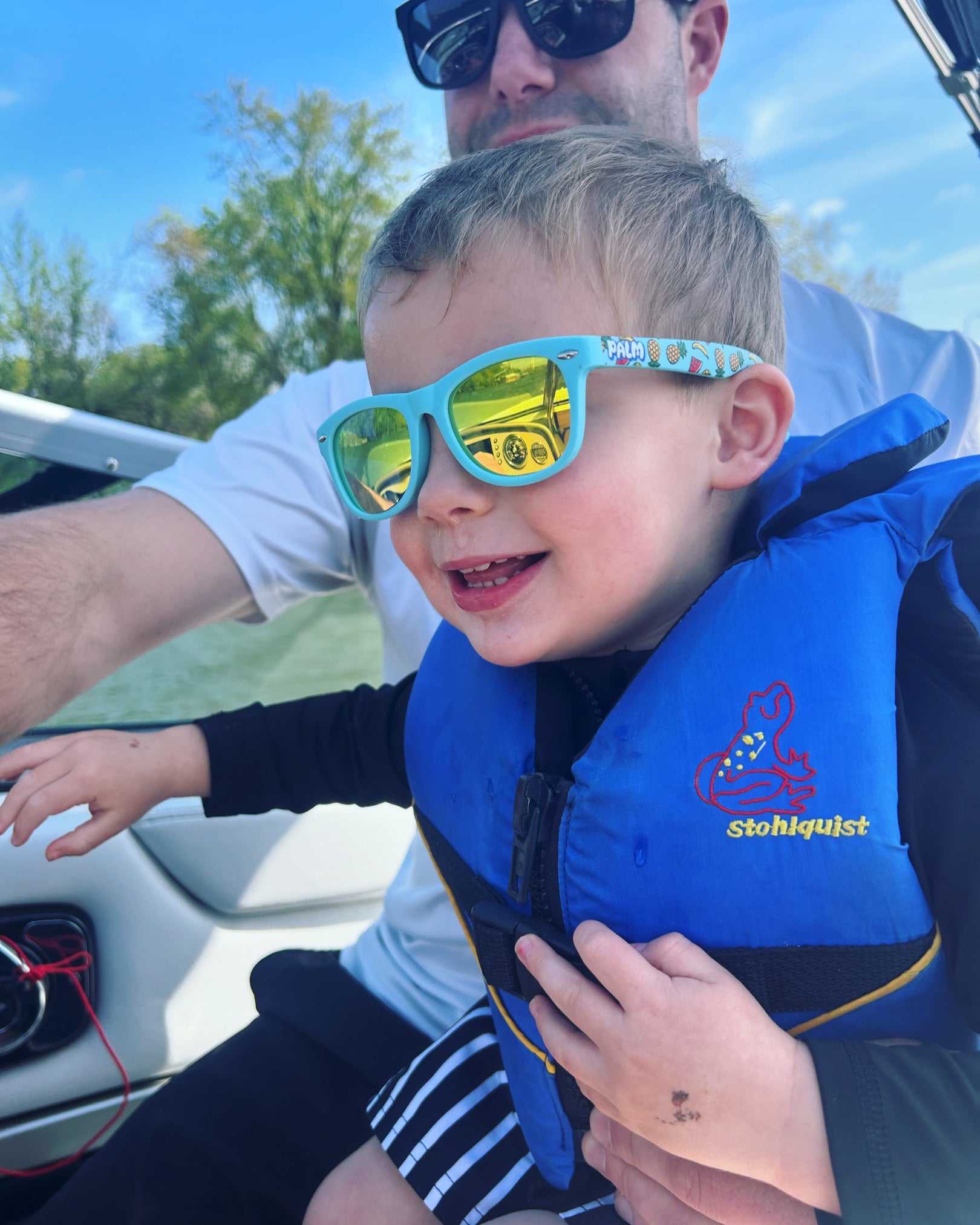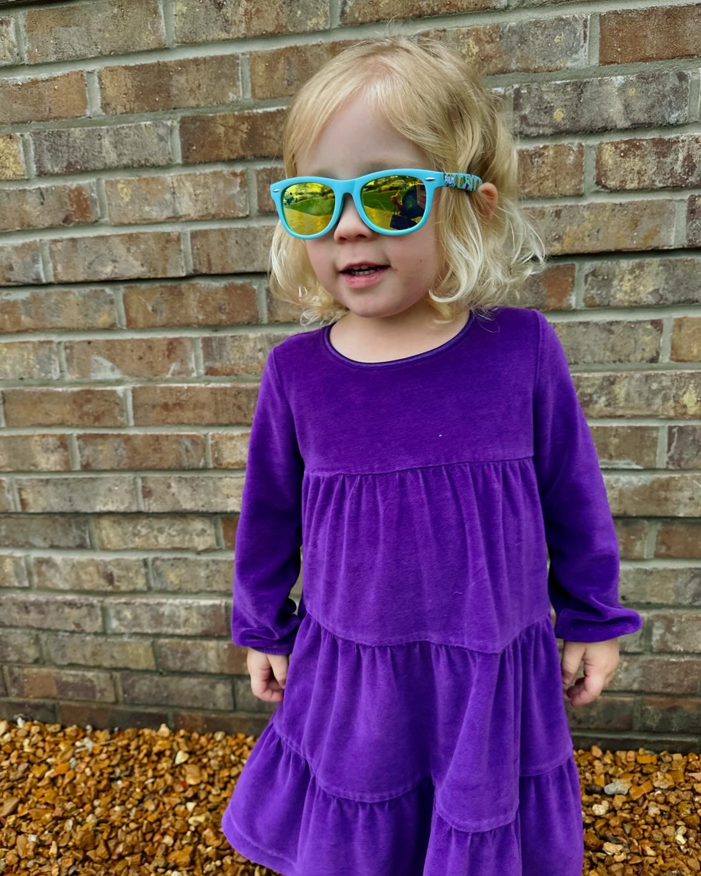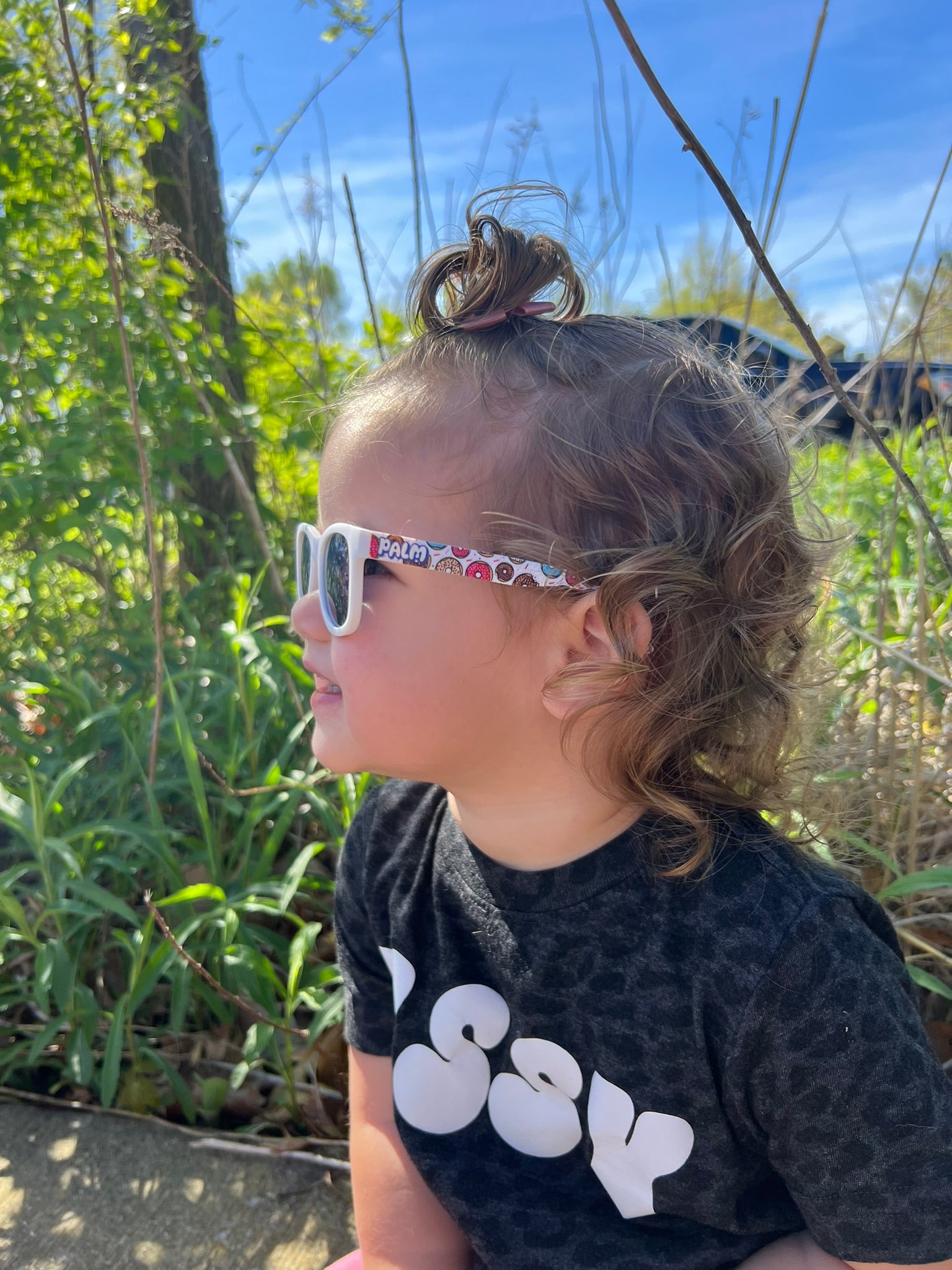 Our daughter loves the idea of making a fashion statement with her sunglasses but she has never left sunglasses on until Palm Sunnies - she keeps them on because they actually fit and are comfortable on her face and ears, she loves picking out a design to match her outfit, and they protect her precious baby blues from the sun. We love Palm Sunnies!